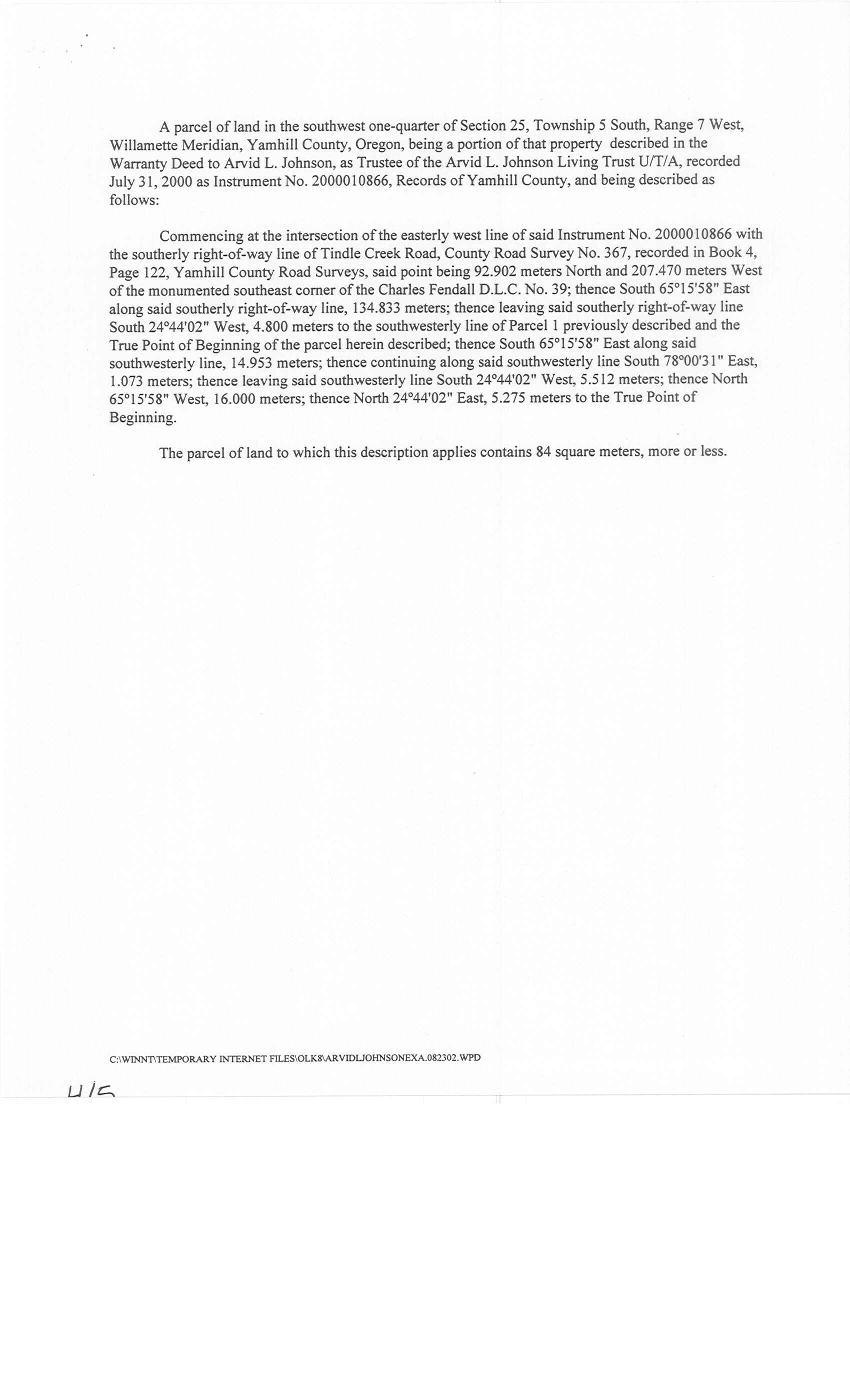 TINDLE CREEK ROAD - dating to 1893. Lies three miles northwest of Willamina. The Creeks name origin is unknown.